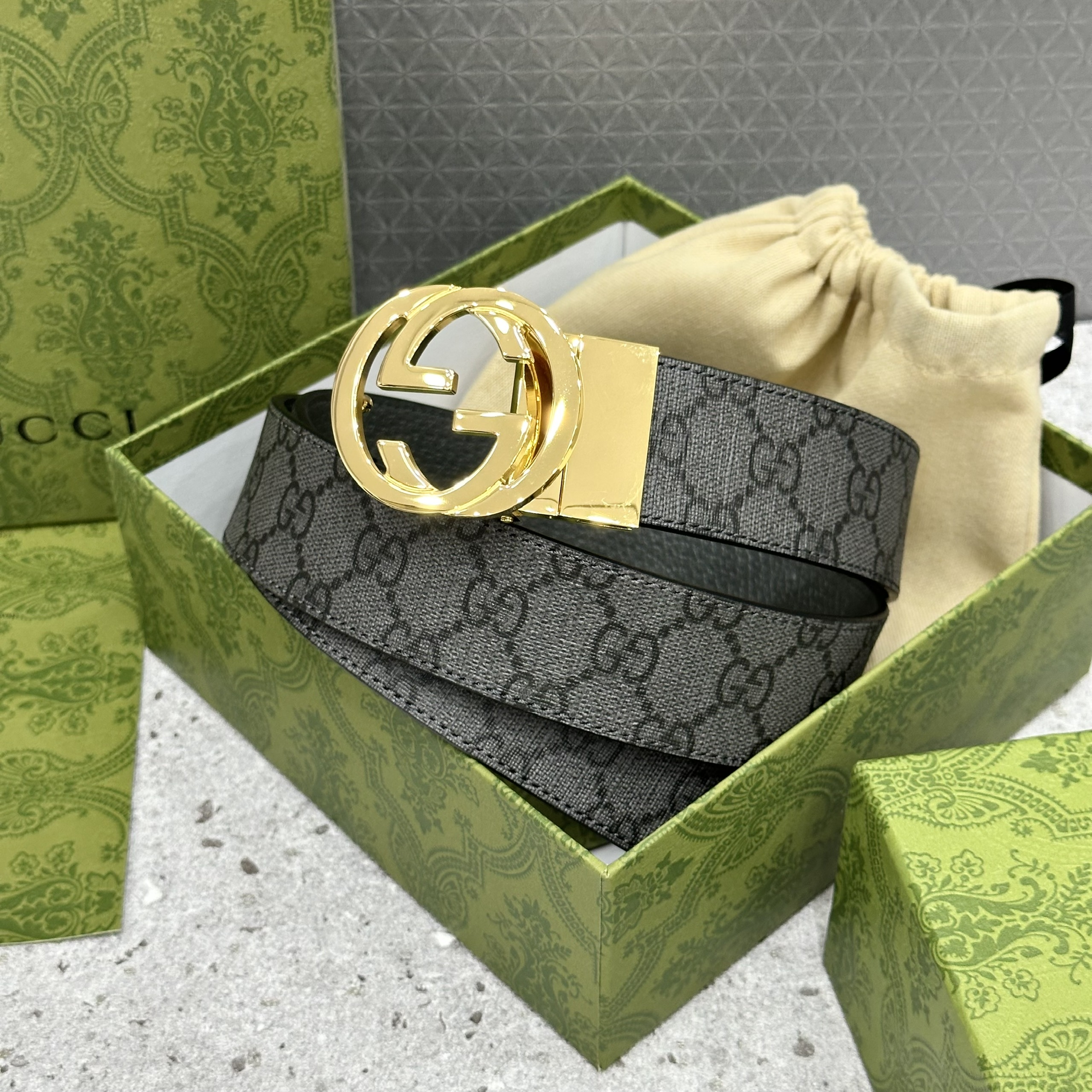 GU black belt with embossed letters and round shiny silver GG face C Super Class